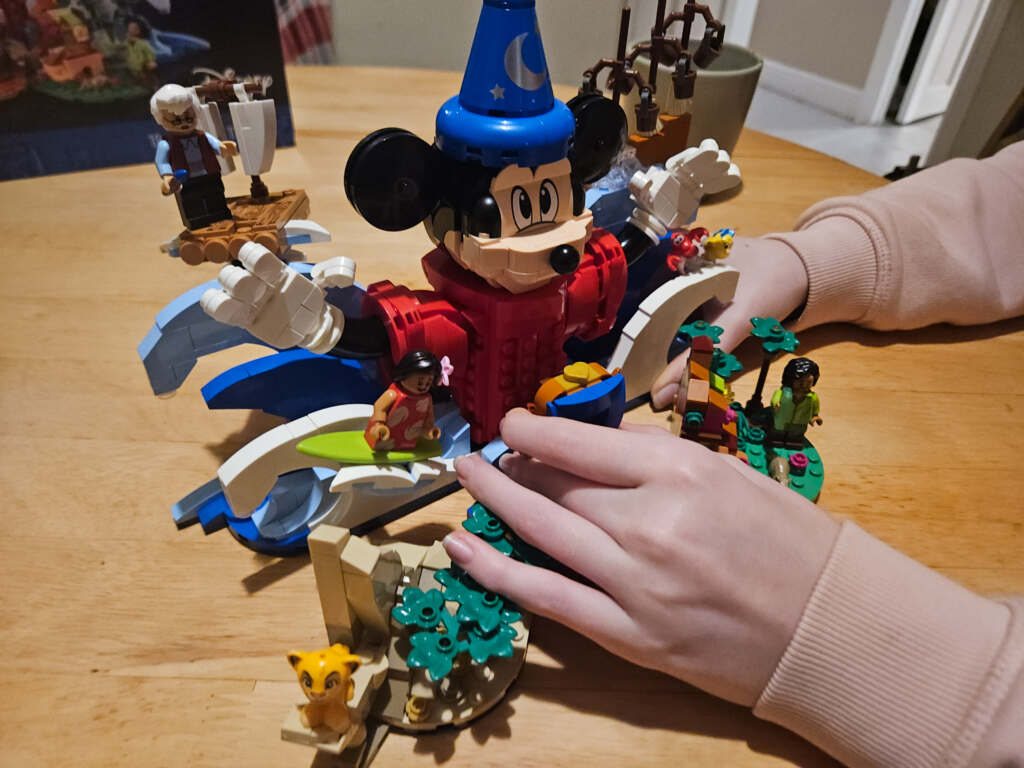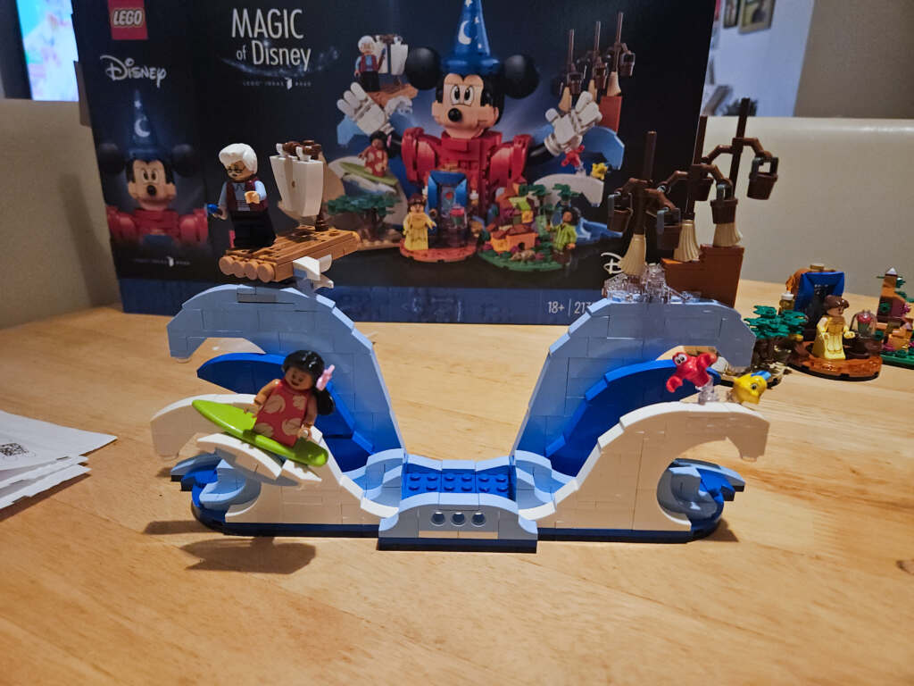 Lego Ideas Magic of Disney… what more do we need in a sentence than Disney, Lego and magic! This set was released on 1 October 2024 and is a LEGO Ideas build with 1103 pieces. The set was created with both the LEGO collector and Disney fan in mind. This set celebrates both classic and new Disney animated films. Each of the small vignettes surround the large central figure of Mickey Mouse. These vignettes include characters from Fantasia, Lilo and Stitch, Lion King and many more!